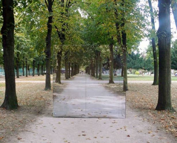 Roue de hamster géante + habillage photographique ( intérieur, extérieur). Ce dispositif nous permet de modifier notre perception de l’espace.